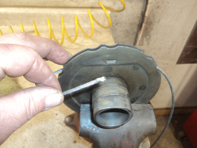 When you remove the cable from the cable reel, you will see that the end of the cable is under a tab. Check to make sure the tab is not broken. Replace or fix if necessary. Also check the tab for the spring. I like to bend it away just a little so it is easier to hook the spring into the tab.