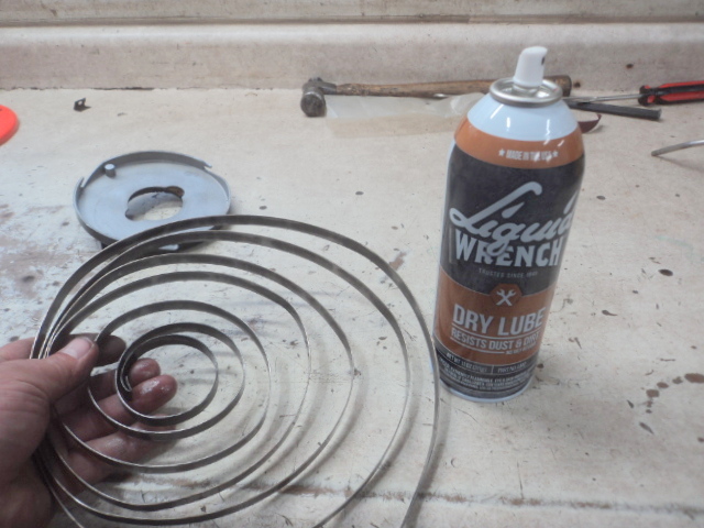 Wind the spring into the spring housing by connecting the looped end of the spring into the housing. Then walk the spring in into the housing.
